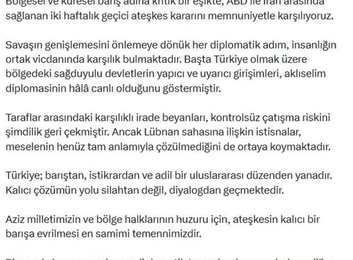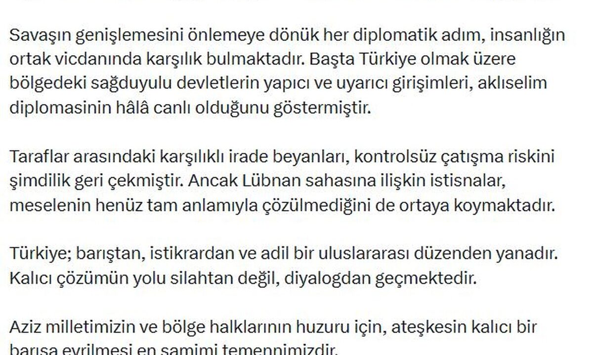 Milliyetçi Hareket Partisi (MHP) Genel Başkanı Devlet Bahçeli, ABD ile İran arasında imzalanan iki haftalık geçici ateşkes...