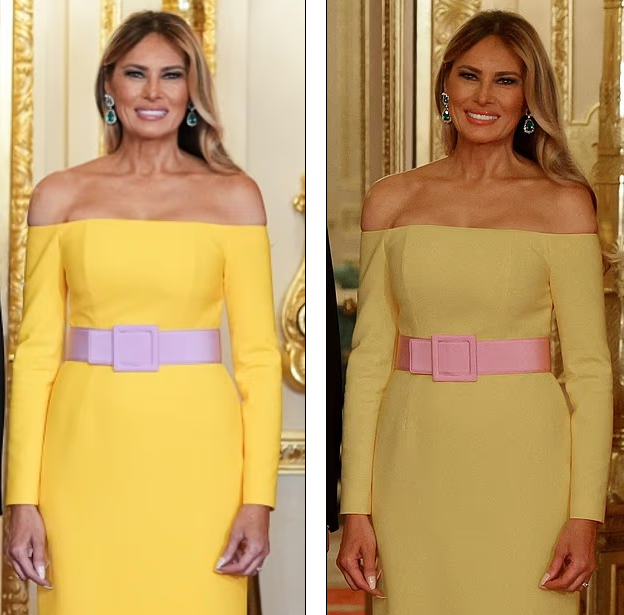 Ancak Başkan Donald Trump ve Kral Charles ile Kraliçe Camilla’nın yanında durduğu görüntüler ortaya çıktığında, insanlar bu cesur moda tercihine şaşkınlıkla bakmaktan da kendini alamadı.