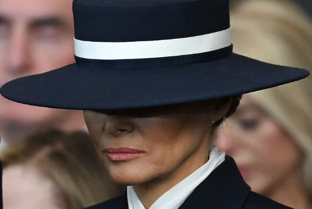 Melania Trump’ın dikkat çeken bir diğer seçimi ise şapkasıydı. Londra’daki ilk adres olan Windsor Kalesi ziyareti sırasında taktığı ve neredeyse gözlerini tamamen gizleyen geniş kenarlı mor şapka eleştirilerin hedefi oldu. Ünlü stilist ve Vogue yazarı Marian Kwei, “Melania’nın şapkası tesadüf değil” dedi.