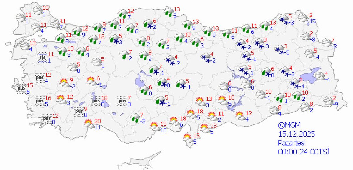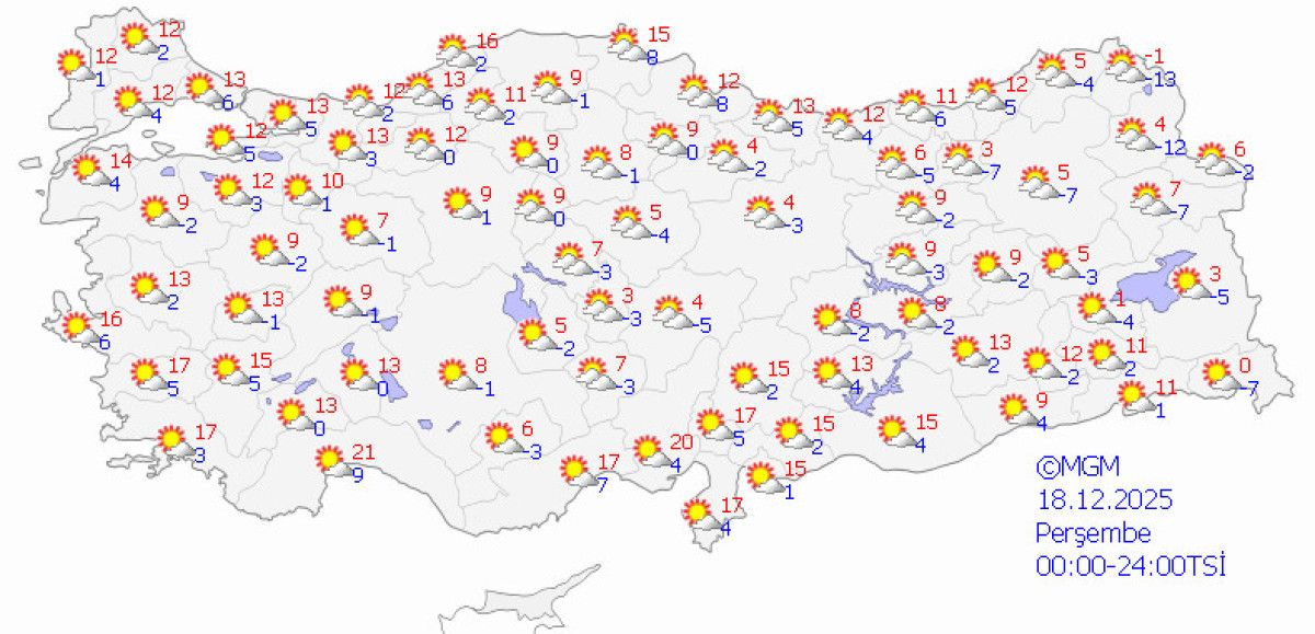 Sıcaklıklar birçok yerde 0 derecenin altına düşüyor; Erzurum, Kars gibi illerde -5 ile 0 derece, Ankara civarında 0-5 derece olacak.