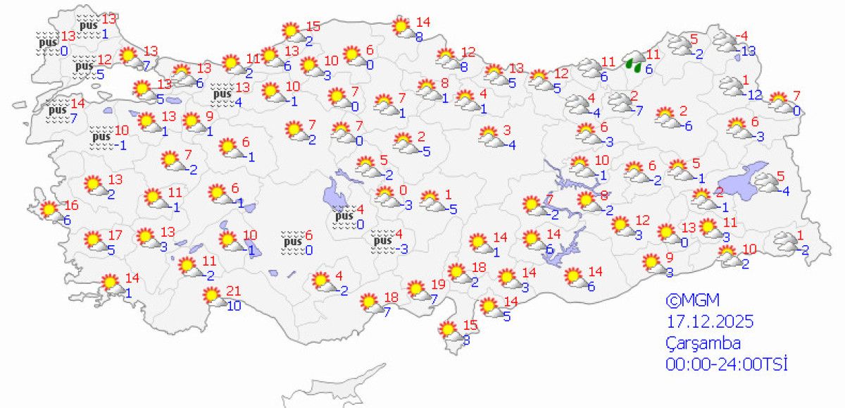 Pus ve sis ülke genelinde sabah saatlerinde etkisini gösterecek.